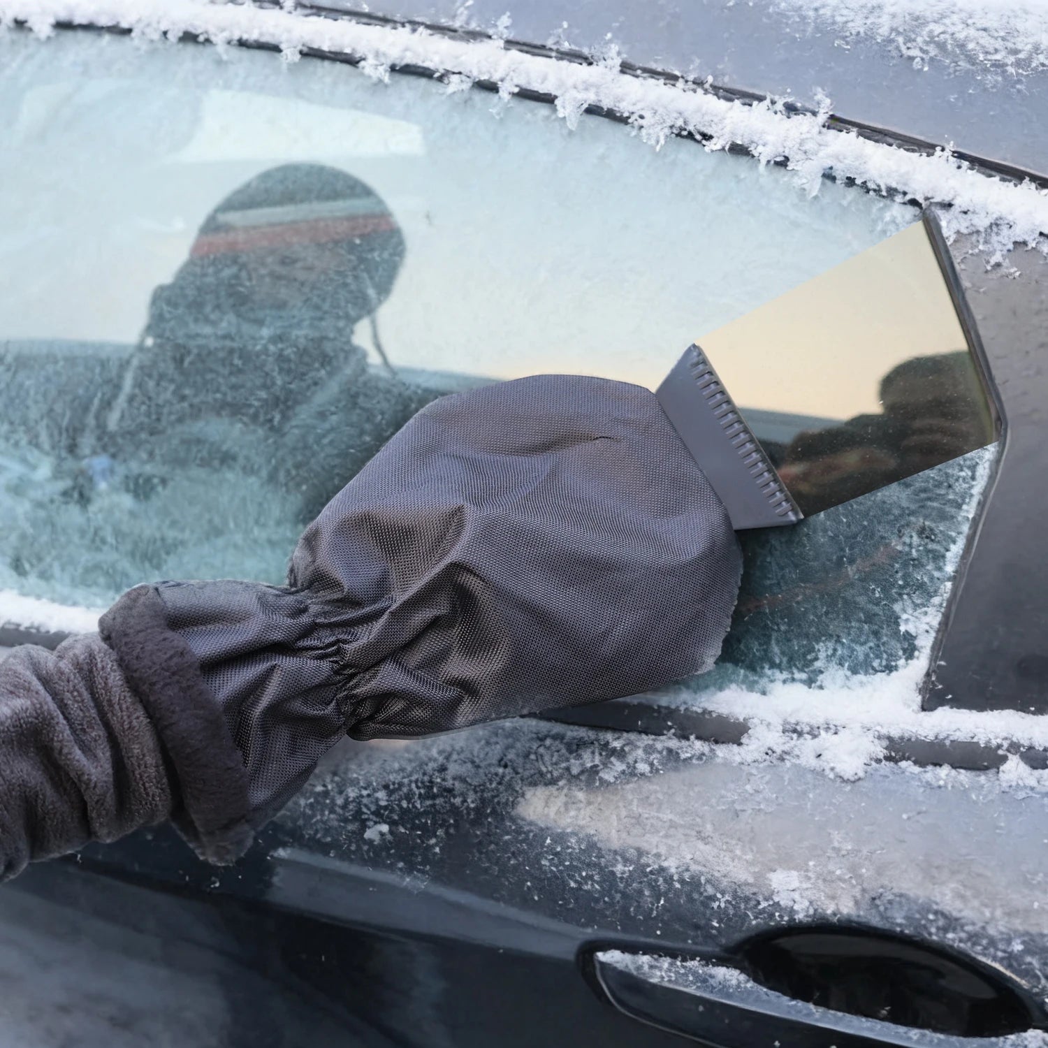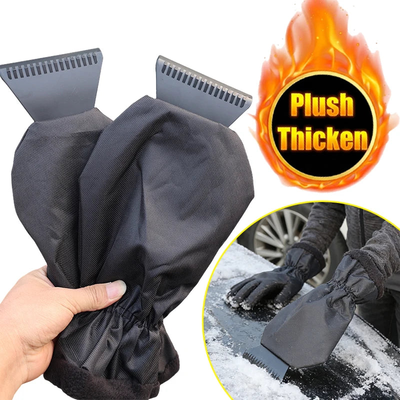 Car Ice Scraper With Glove Warm Fleece Lined Auto Windshield Snow Remover Shovel Tool Winter Window Cleaning Accessories Kit